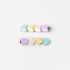 un ensemble comprenant deux pinces à cheveux et un élastique à cheveux, le tout décoré de pompons colorés.