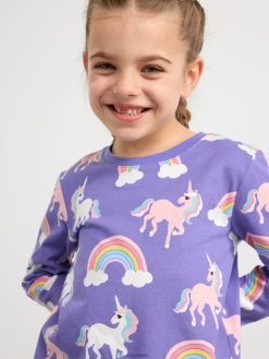 un ensemble de pyjama doux et confortable comprenant un haut à manches longues avec poignets pliables et une paire de leggings assortis, tous deux avec un imprimé licorne et arc-en-ciel intégral. Grâce à notre solution intelligente de taille étendue, comprenant des manches longues et des revers de jambe, l’enfant peut grandir d’une taille tout en gardant le même vêtement. matériel. c’est une pièce certifiée Gots. il est fabriqué à partir de coton biologique et chaque étape de la production a été certifiée de manière indépendante pour garantir qu’elle respecte les exigences sociales et environnementales de Gots (norme mondiale des textiles biologiques).