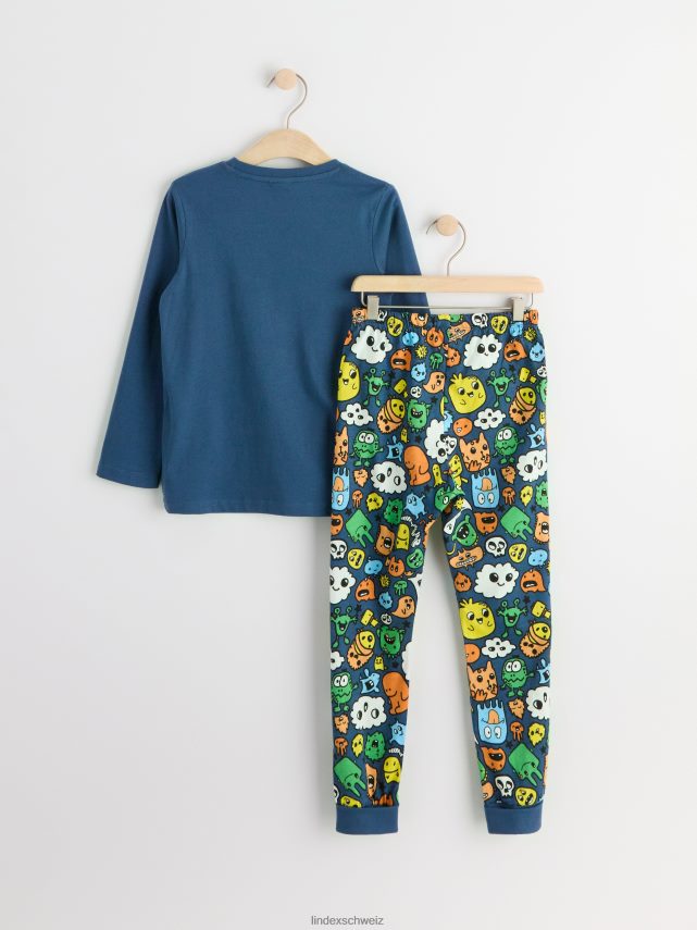 ensemble pyjama avec des monstres bleu poussiéreux foncé Lindex vêtements enfants D44L8F3500
