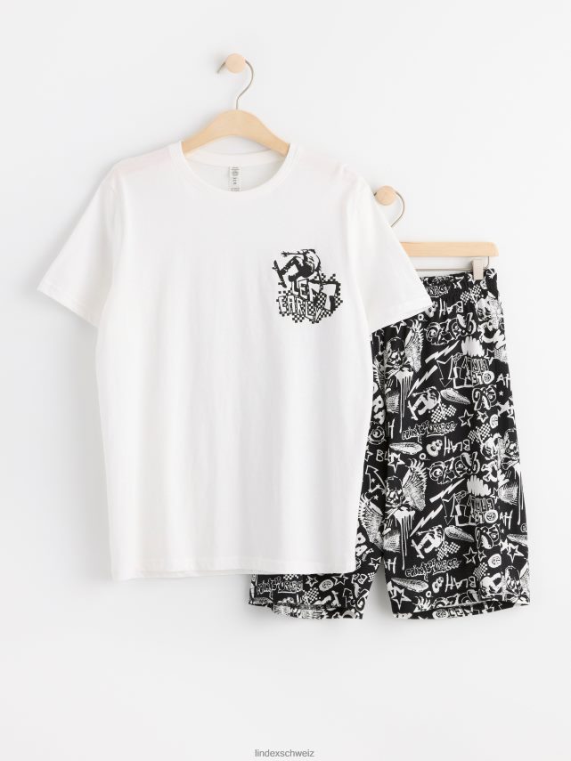 un ensemble pyjama confortable comprenant un t-shirt et un short assorti. matériel. cette pièce est partiellement réalisée en coton biologique. le coton biologique est cultivé sans produits chimiques toxiques ni graines de coton génétiquement modifiées. la culture préserve la biodiversité, les écosystèmes et les personnes en utilisant des processus naturels plutôt que des intrants artificiels.