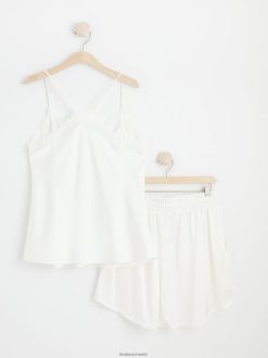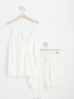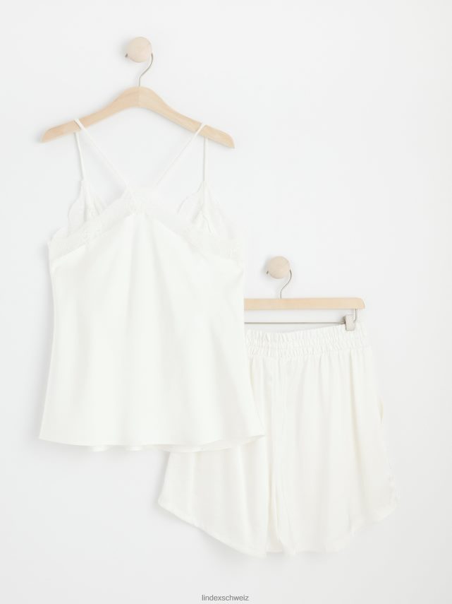 un ensemble de pyjama super doux et élégant comprenant un caraco avec des détails en dentelle et un short assorti, tous deux en satin de qualité. durabilité. cette pièce est partiellement fabriquée en polyester recyclé. Lorsque l’on utilise du polyester recyclé, cela signifie que des matériaux qui ont déjà été produits, comme les bouteilles en PET, ont une autre chance. il est beaucoup plus économe en ressources que la production de nouveaux matériaux, ce qui le rend meilleur pour l’environnement et réduit l’impact climatique.