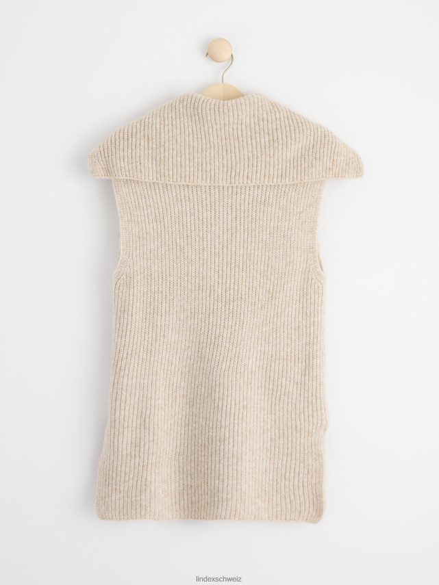 un gilet doux et côtelé avec un grand col. matériel. cette pièce est partiellement fabriquée en polyester recyclé. Lorsque l’on utilise du polyester recyclé, cela signifie que des matériaux qui ont déjà été produits, comme les bouteilles en PET, ont une autre chance. il est beaucoup plus économe en ressources que la production de nouveaux matériaux, ce qui le rend meilleur pour l’environnement et réduit l’impact climatique.