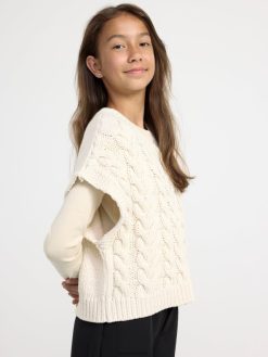 gilet en tricot torsadé beige Lindex vêtements enfants D44L8F3441