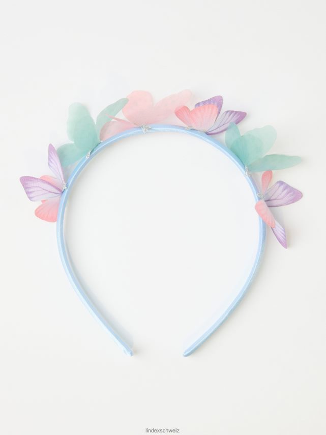 un joli bandeau Alice violet avec des papillons 3D de différentes couleurs.
