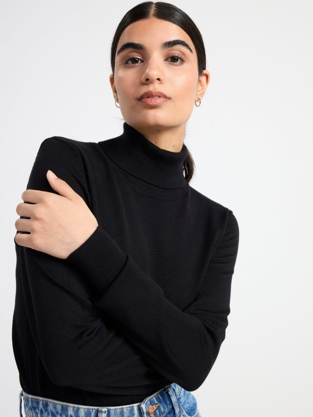 haut à col roulé en maille fine noir Lindex vêtements femmes D44L8F775