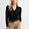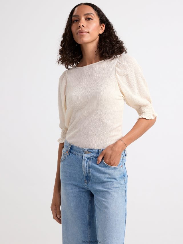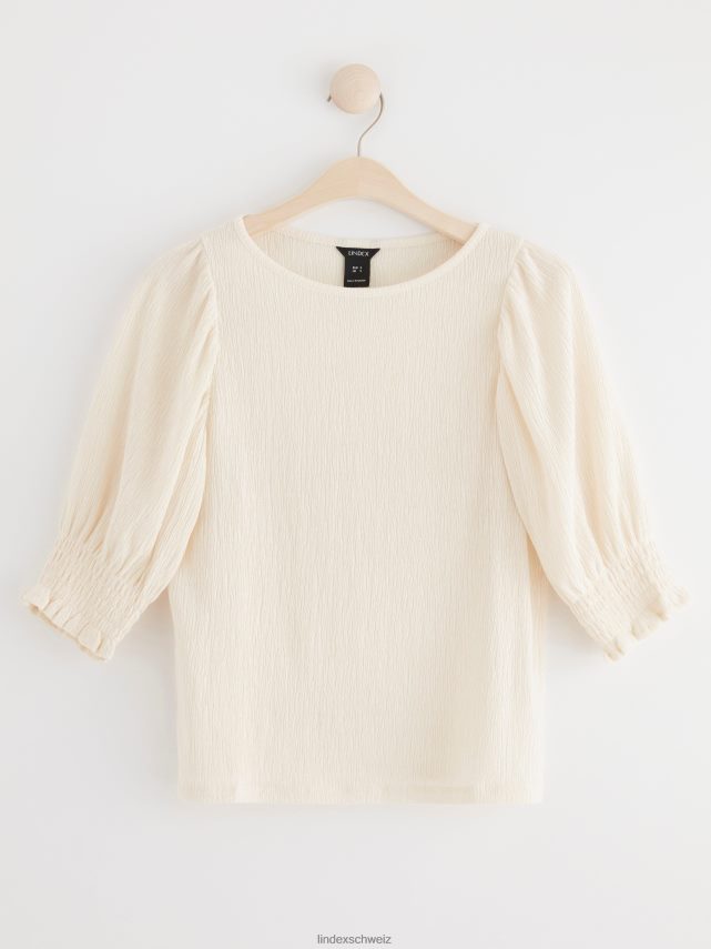 un top stylé en jersey texturé avec une encolure ronde et des manches courtes bouffantes aux poignets élastiqués. matériel. cette pièce est partiellement réalisée en tencel lyocell. le matériau provient d’une foresterie responsable et est produit avec un impact moindre sur l’environnement. la production a lieu dans un système en boucle fermée où les produits chimiques sont réutilisés.