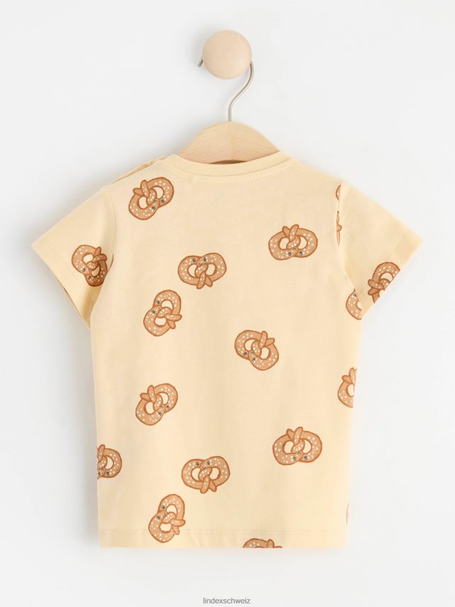 un haut confortable à manches courtes avec un imprimé bretzel sur l’ensemble. matériel. c’est une pièce certifiée Gots. il est fabriqué à partir de coton biologique et chaque étape de la production a été certifiée de manière indépendante pour garantir qu’elle respecte les exigences sociales et environnementales de Gots (norme mondiale des textiles biologiques).