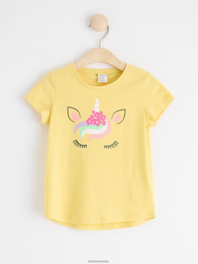 un haut à manches courtes doux et confortable avec un imprimé licorne scintillant sur le devant. matériel. cette pièce est partiellement réalisée en coton biologique. le coton biologique est cultivé sans produits chimiques toxiques ni graines de coton génétiquement modifiées. la culture protège la biodiversité, les écosystèmes et les personnes en utilisant des processus naturels plutôt que des intrants artificiels.