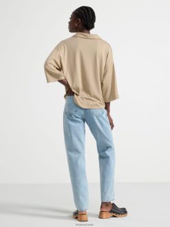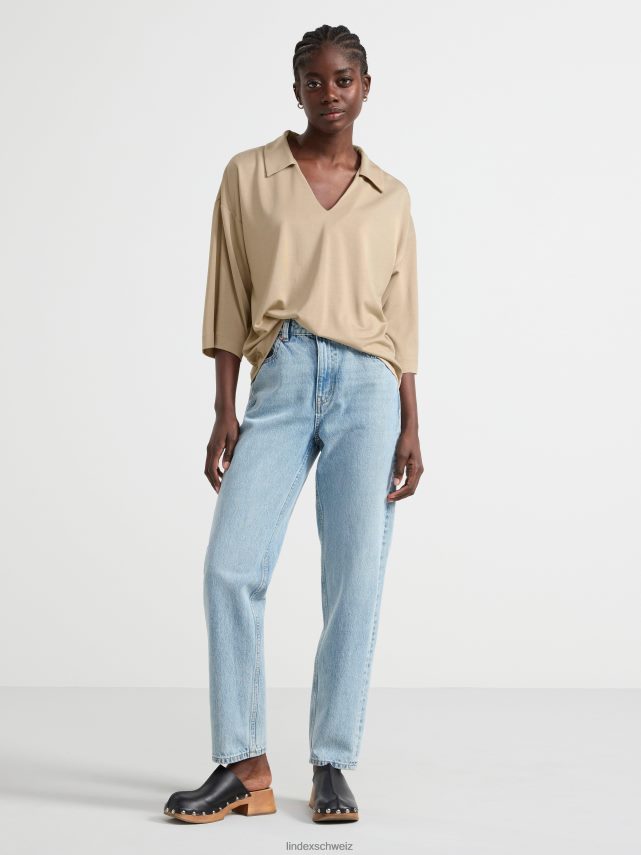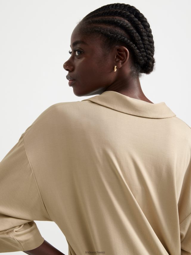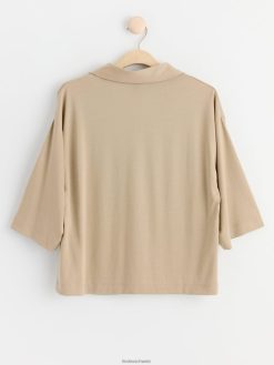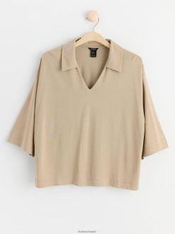 haut à manches courtes et col en V beige poussiéreux Lindex vêtements femmes D44L8F342