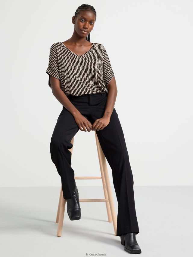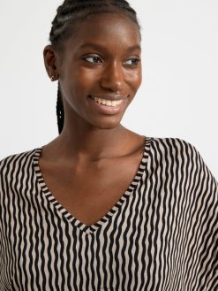 un haut doux à manches courtes avec un col en V et un imprimé à pois sur l’ensemble. matériel. cette pièce est fabriquée en écovero Lenzing, une option plus durable par rapport à la viscose conventionnelle. le matériau provient d’une foresterie responsable et est produit avec un impact moindre sur l’environnement.