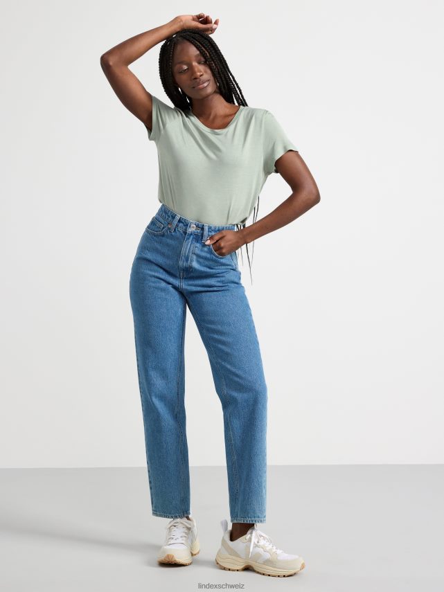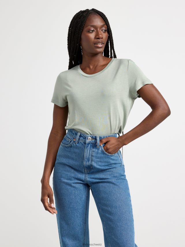 haut à manches courtes neuf vert légèrement poussiéreux Lindex vêtements femmes D44L8F219