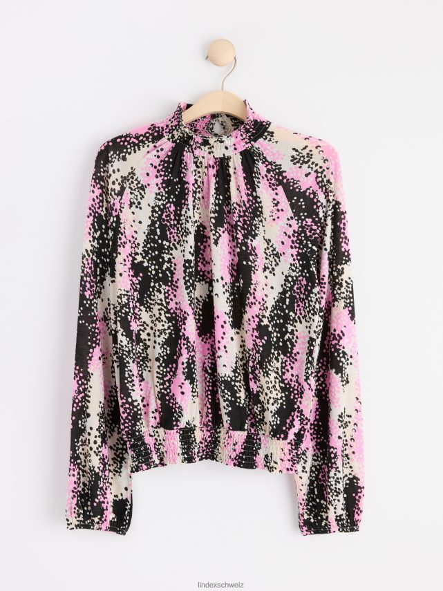 haut à manches longues à motif avec smock rose clair Lindex vêtements femmes D44L8F343