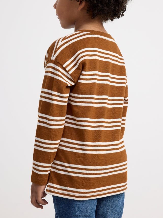 un haut confortable à manches longues avec un motif rayé sur l’ensemble. matériel. c’est une pièce certifiée Gots. il est fabriqué à partir de coton biologique et chaque étape de la production a été certifiée de manière indépendante pour garantir qu’elle respecte les exigences sociales et environnementales de gots (norme mondiale des textiles biologiques).