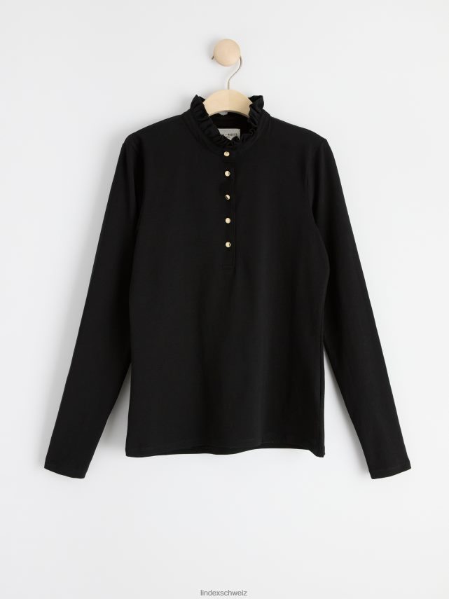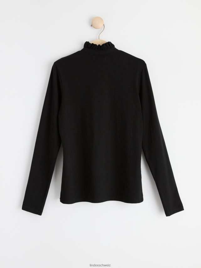 haut à manches longues avec col volanté noir Lindex vêtements femmes D44L8F292
