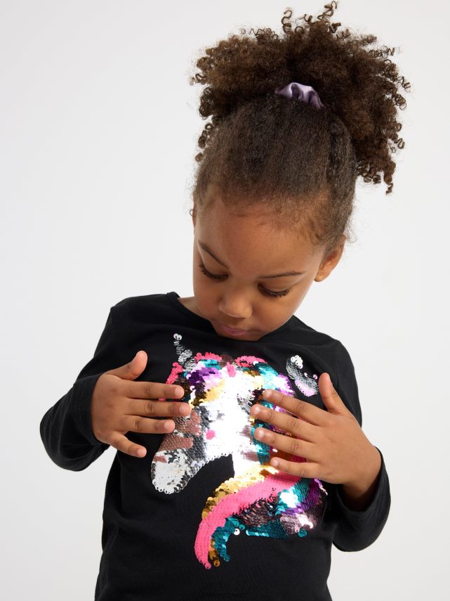 haut à manches longues avec sequins réversibles noir Lindex vêtements enfants D44L8F2737