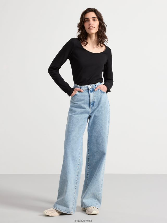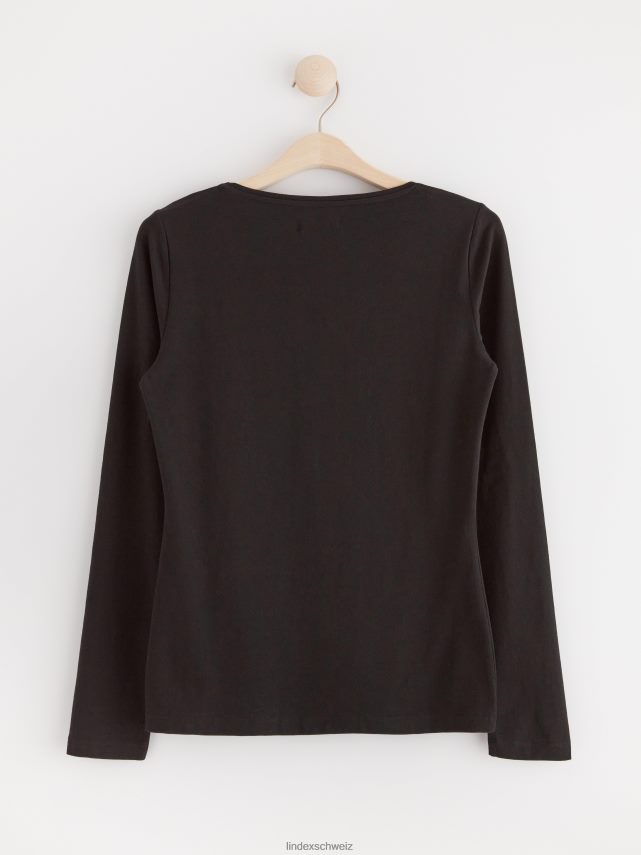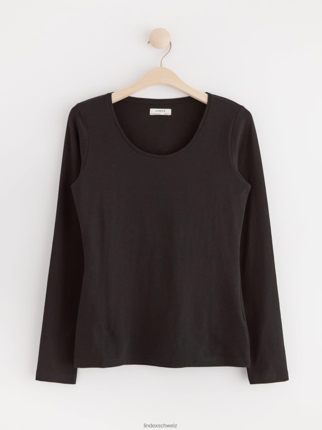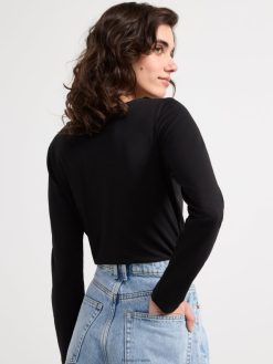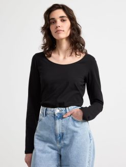 top en coton stretch en coton biologique à col rond et manches longues. un basique idéal à garder dans son dressing.