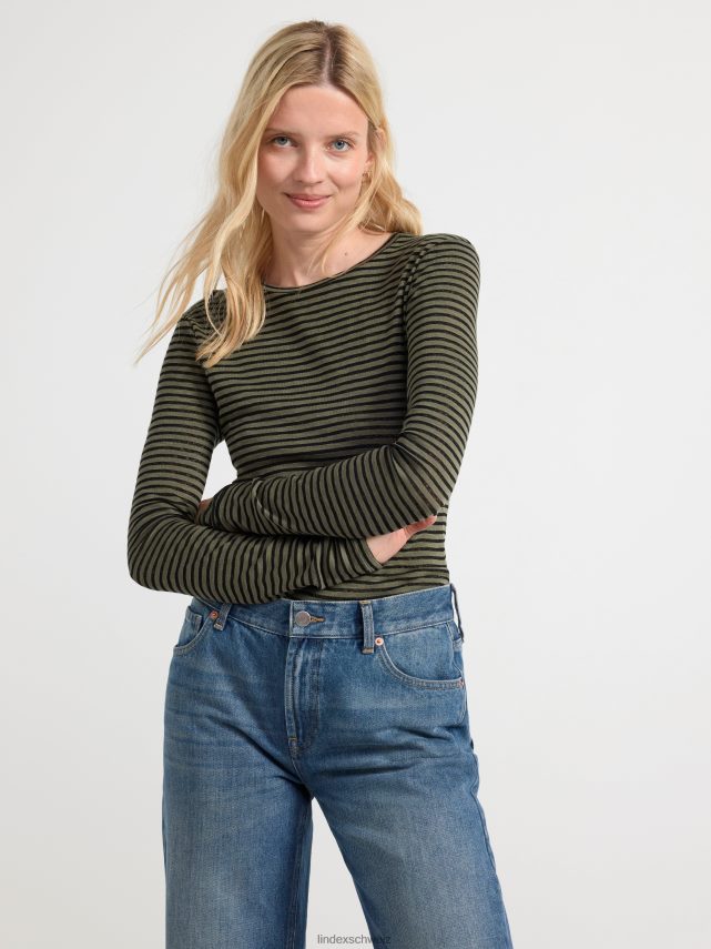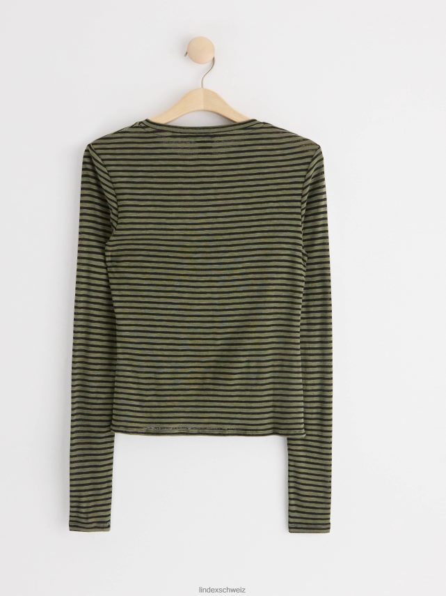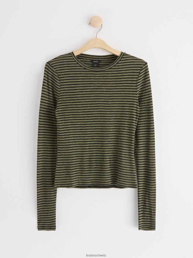 haut classique à manches longues avec encolure ronde et silhouette ajustée, fabriqué en tissu extensible.