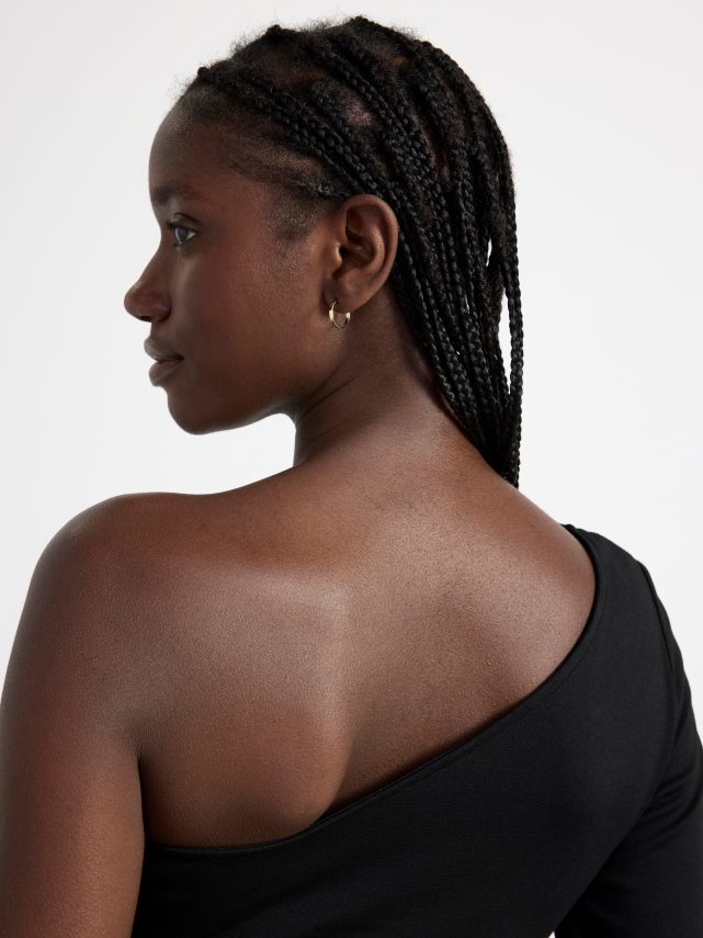 haut élégant avec un design à une épaule et une silhouette ajustée, fabriqué en jersey doux.