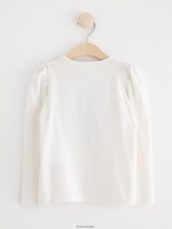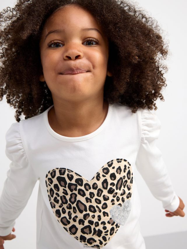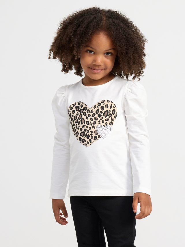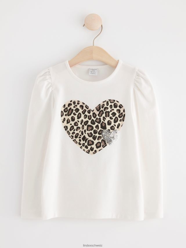 haut en coton doux avec manches longues bouffantes et imprimé en forme de cœur sur le devant.