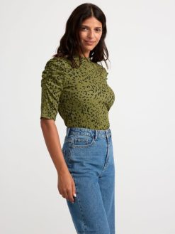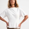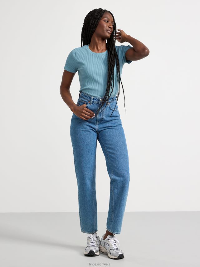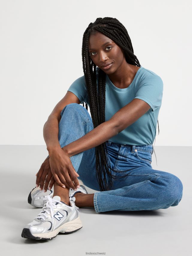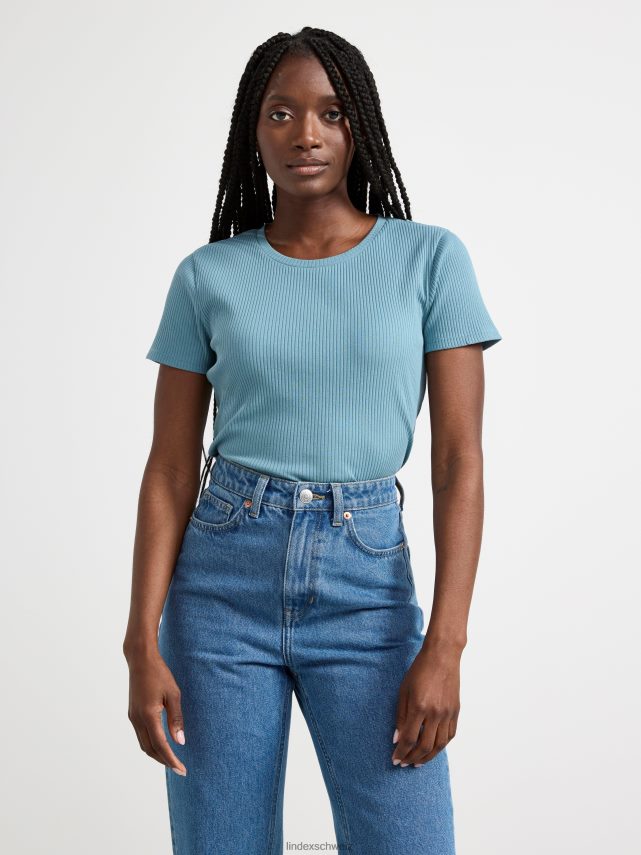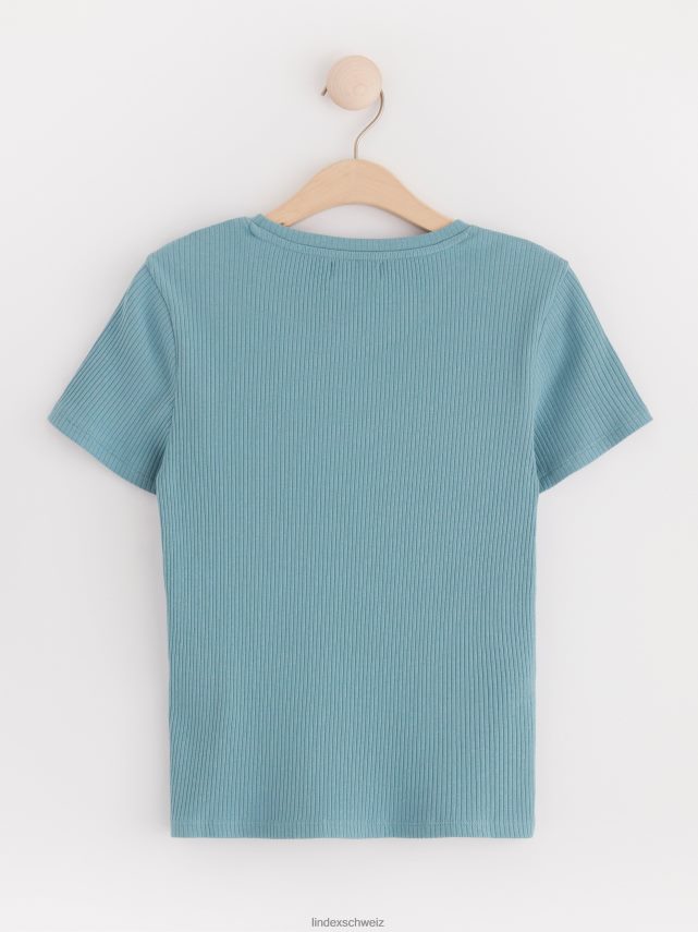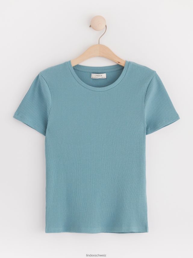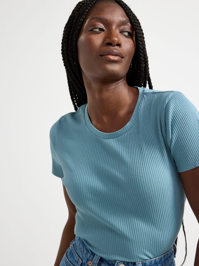 un haut doux à manches courtes côtelé avec une encolure ronde. matériel. cette pièce est partiellement réalisée en coton biologique. le coton biologique est cultivé sans produits chimiques toxiques ni graines de coton génétiquement modifiées. la culture protège la biodiversité, les écosystèmes et les personnes en utilisant des processus naturels plutôt que des intrants artificiels.
