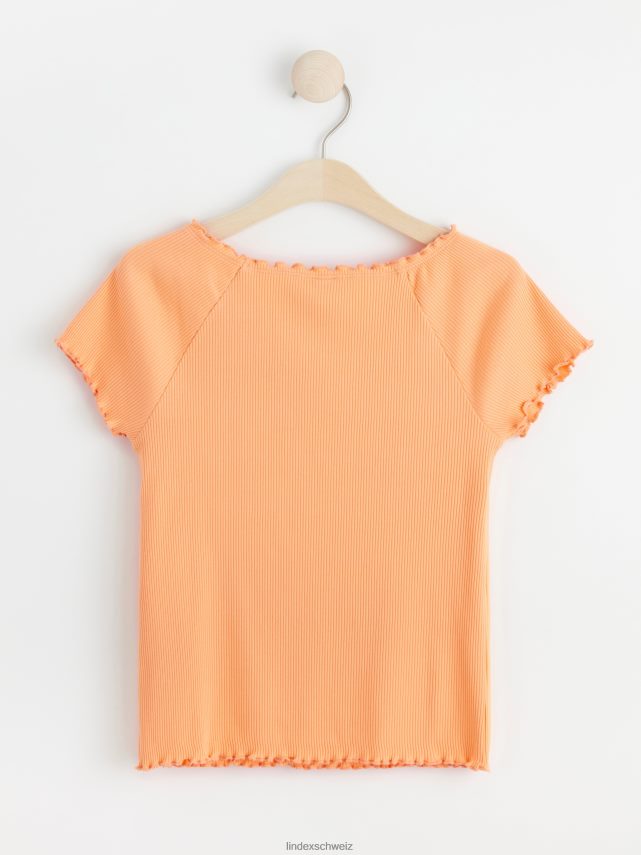 un haut côtelé doux à manches courtes. matériel. c’est une pièce certifiée Gots. il est fabriqué à partir de coton biologique et chaque étape de la production a été certifiée de manière indépendante pour garantir qu’elle respecte les exigences sociales et environnementales de Gots (norme mondiale des textiles biologiques).