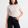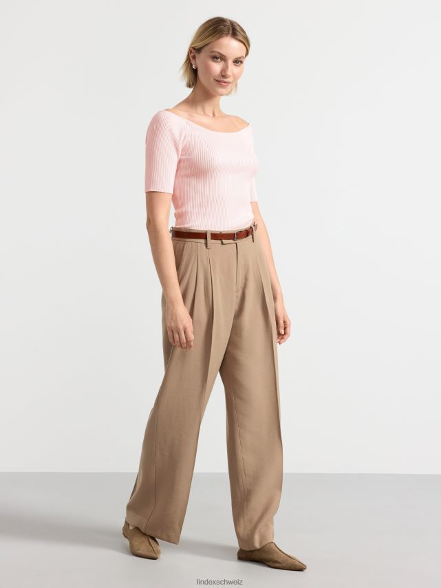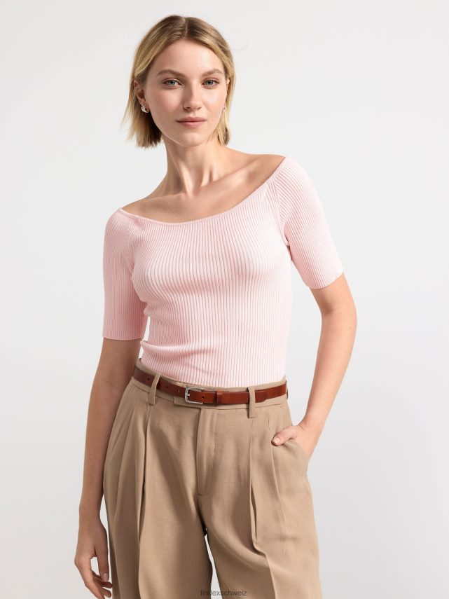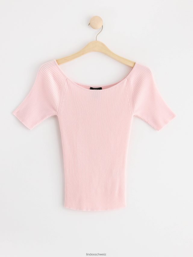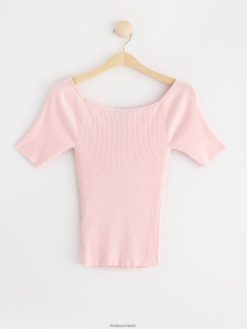 un haut côtelé à manches courtes doux et élégant avec un décolleté arrondi profond.