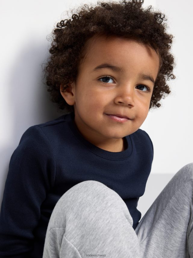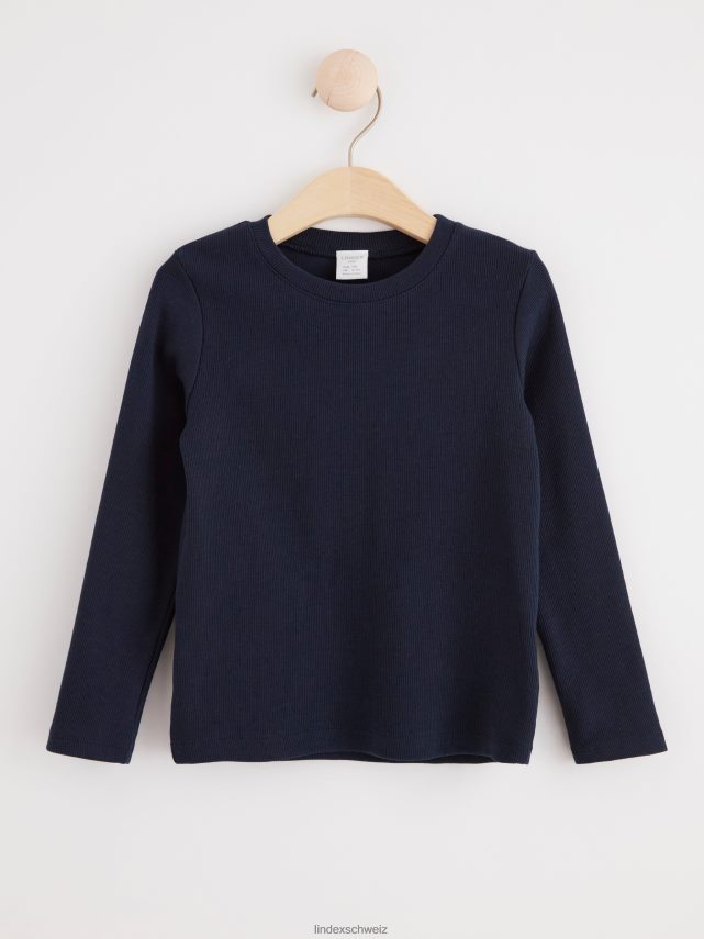haut côtelé à manches longues bleu marine foncé Lindex vêtements enfants D44L8F2742