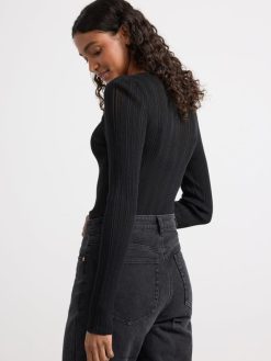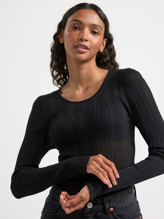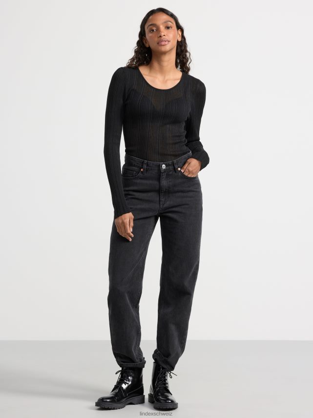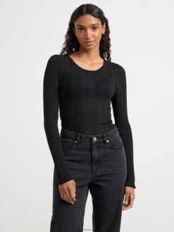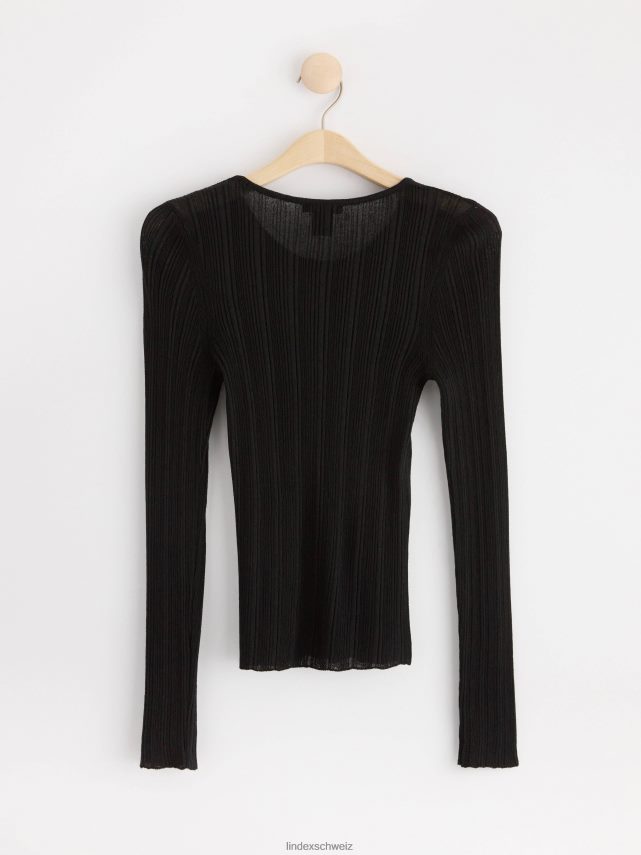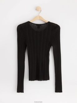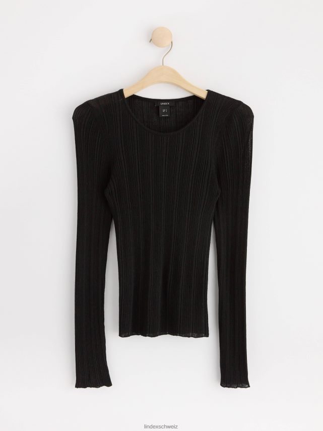 haut côtelé à manches longues noir Lindex vêtements femmes D44L8F723