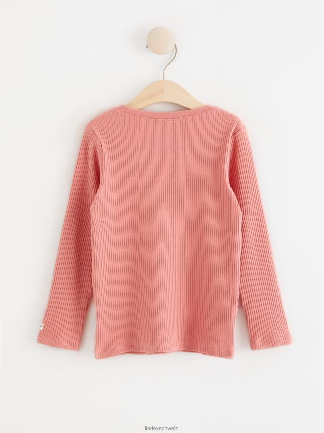 haut côtelé à manches longues rose poussiéreux Lindex vêtements enfants D44L8F2887