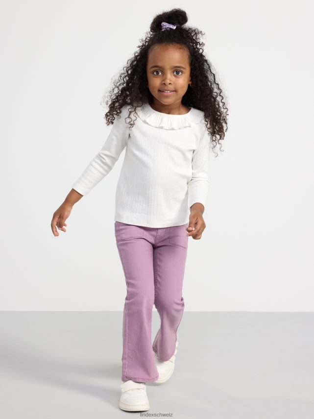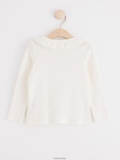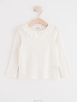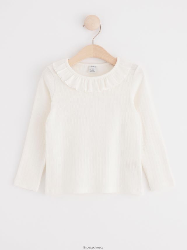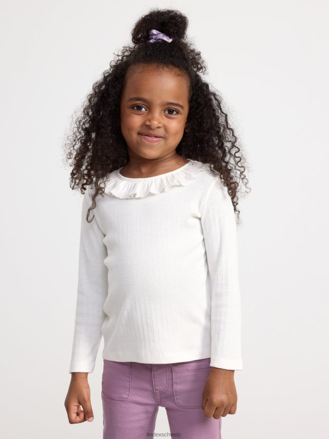 un haut à manches longues doux et confortable avec une texture côtelée et un joli volant sur l’encolure. matériel. c’est une pièce certifiée Gots. il est fabriqué à partir de coton biologique et chaque étape de la production a été certifiée de manière indépendante pour garantir qu’elle respecte les exigences sociales et environnementales de Gots (norme mondiale des textiles biologiques).