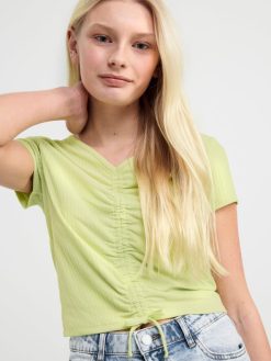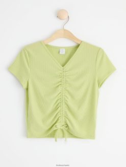 haut côtelé avec fronces sur le devant vert clair Lindex vêtements enfants D44L8F2928