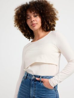 un haut doux à manches longues en jersey de coton biologique avec une double épaisseur sur le dessus et une couche intérieure pratique pour un accès plus facile à l’allaitement. matériel. c’est une pièce certifiée Gots. il est fabriqué à partir de coton biologique et chaque étape de la production a été certifiée de manière indépendante pour garantir qu’elle respecte les exigences sociales et environnementales de Gots (norme mondiale des textiles biologiques).