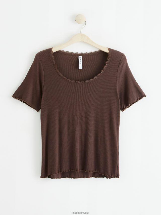 un haut de pyjama confortable avec des manches courtes, des bords volantés et une bordure en dentelle à l’encolure. confectionné en jersey doux et côtelé. matériel. cette pièce est fabriquée en écovero Lenzing, une option plus durable par rapport à la viscose conventionnelle. le matériau provient d’une foresterie responsable et est produit avec un impact moindre sur l’environnement.