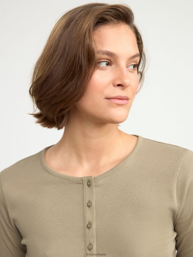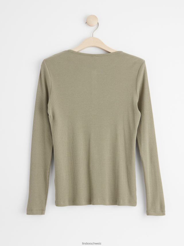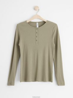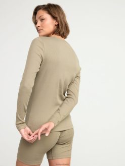 haut de pyjama côtelé à manches longues kaki Lindex vêtements femmes D44L8F2072
