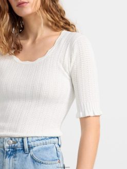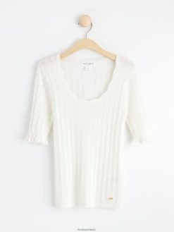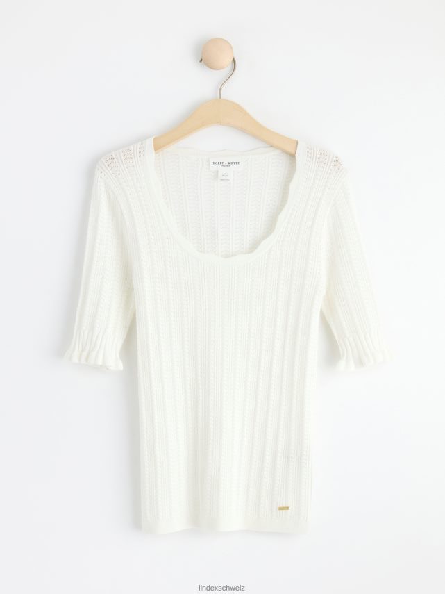 haut en maille à manches courtes blanc cassé Lindex vêtements femmes D44L8F311