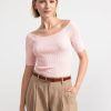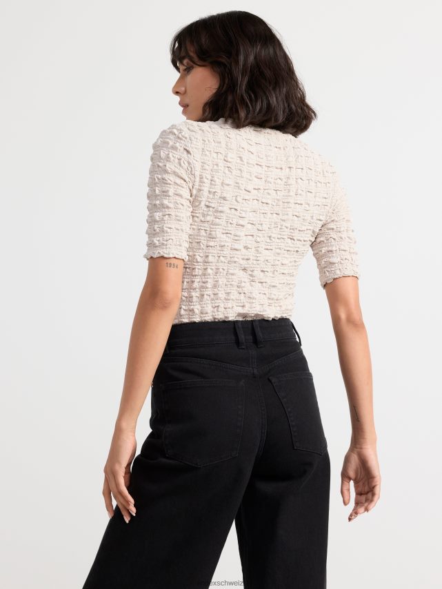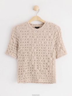 top froissé à manches courtes, encolure ronde et coupe droite.