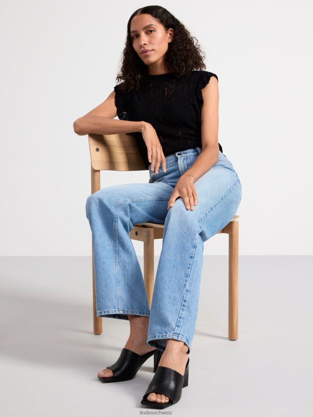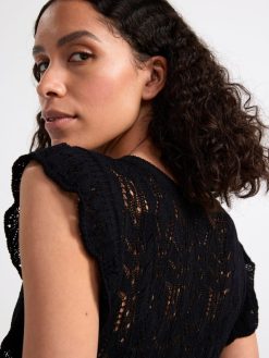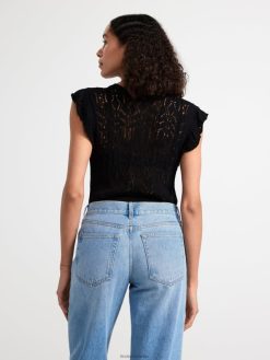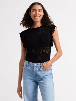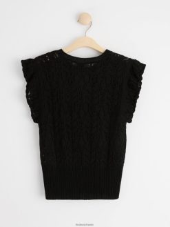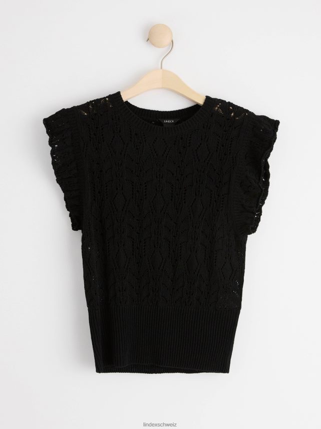 un haut doux en maille ajourée, sans manches et volants sur les épaules, confectionné en viscose mélangée.