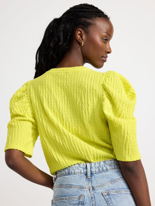 un haut élégant à manches courtes avec une surface texturée sur toute la surface, fabriqué dans un tissu extensible.
