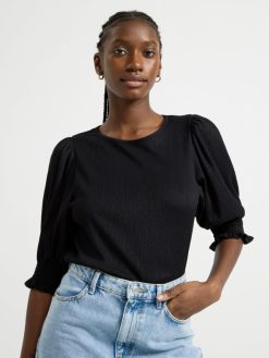 un haut élégant à manches courtes avec une surface texturée sur toute la surface.