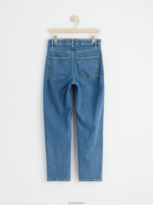 nos jeans super confortables et élégants sont parfaitement ajustés avec une jambe droite, une taille classique et une qualité extensible. ici dans un délavage bleu moyen et des jambes raccourcies.