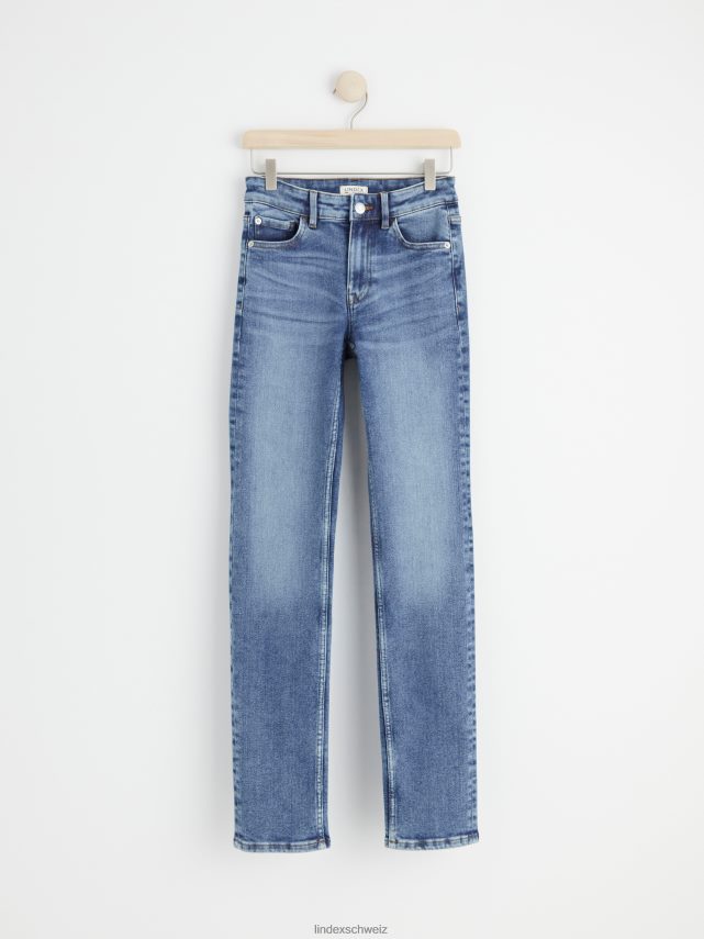 notre jean super confortable et extensible coupe alba avec une jambe droite fine, une taille classique et une qualité avec beaucoup d’élasticité. ici dans un délavage bleu moyen.