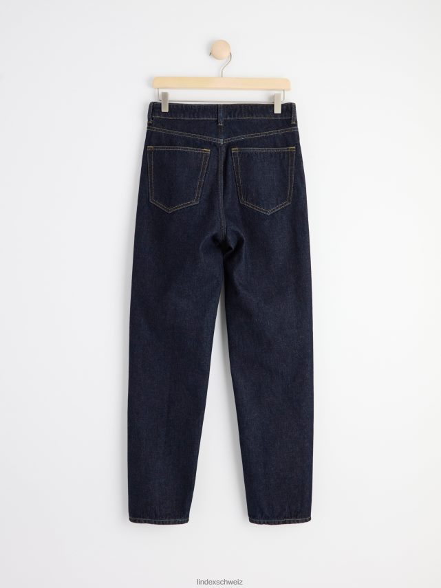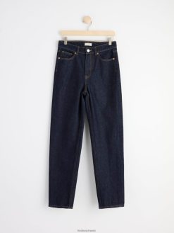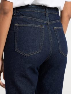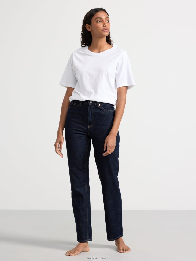 jean droit taille haute en coton recyclé délavage foncé. une bouteille un vêtement. laver le denim de manière conventionnelle peut utiliser jusqu’à 45 litres d’eau par vêtement. Grâce à l’utilisation d’une nouvelle technologie innovante, une seule bouteille d’eau a été utilisée dans le processus de lavage de ce style denim. cela représente une économie d’eau de 80 %. Apprenez-en davantage sur une bouteille, un vêtement sur lindex.com. matériel. cette pièce est confectionnée en coton recyclé. en utilisant du coton recyclé, cela signifie que le coton qui a déjà été cultivé et qui aurait été gaspillé a une autre chance. c’est beaucoup plus économe en ressources et en eau par rapport à la culture de nouveau coton.