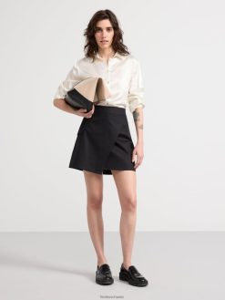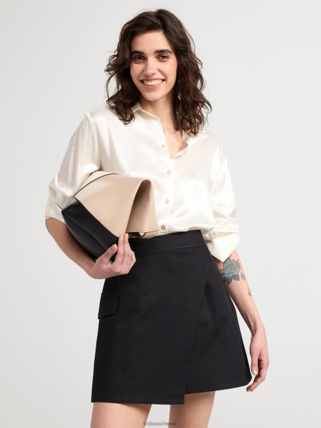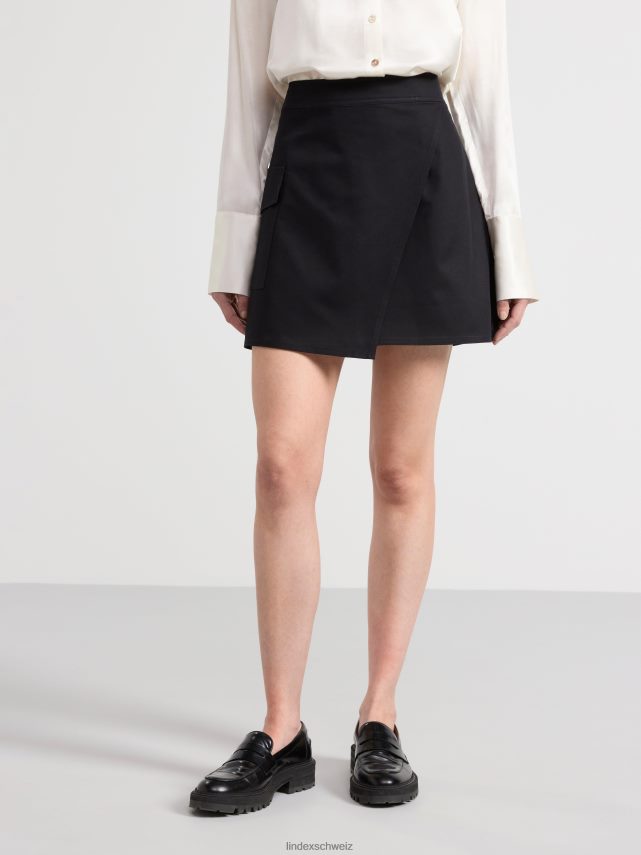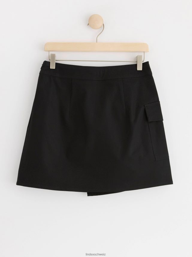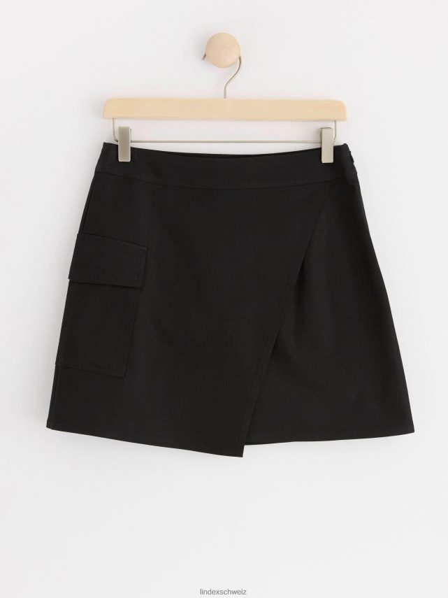 Mini-jupe simple et élégante avec un design portefeuille et une grande poche sur le devant, fabriquée en coton mélangé doux.