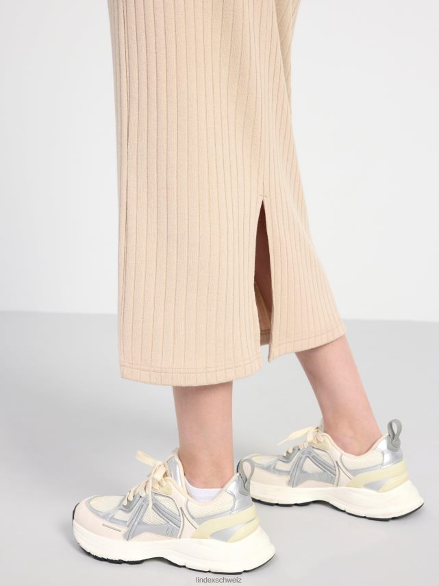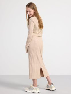 une jupe côtelée avec une taille élastique confortable. matériel. cette pièce est fabriquée à partir de polyester recyclé. Lorsque l’on utilise du polyester recyclé, cela signifie que des matériaux qui ont déjà été produits, comme les bouteilles en PET, ont une autre chance. il est beaucoup plus économe en ressources que la production de nouveaux matériaux, ce qui le rend meilleur pour l’environnement et réduit l’impact climatique.