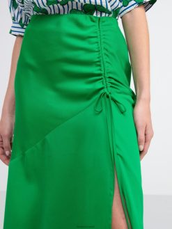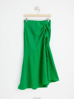 une jupe fluide et polyvalente en satin doux. avec une bande à nouer élégante sur le devant, vous pouvez resserrer la bande et porter la jupe asymétrique, ou laisser la bande détendue pour un look plus classique. matériel. cette pièce est fabriquée à partir de polyester recyclé. Lorsque l’on utilise du polyester recyclé, cela signifie que des matériaux qui ont déjà été produits, comme les bouteilles en PET, ont une autre chance. il est beaucoup plus économe en ressources que la production de nouveaux matériaux, ce qui le rend meilleur pour l’environnement et réduit l’impact climatique.