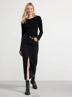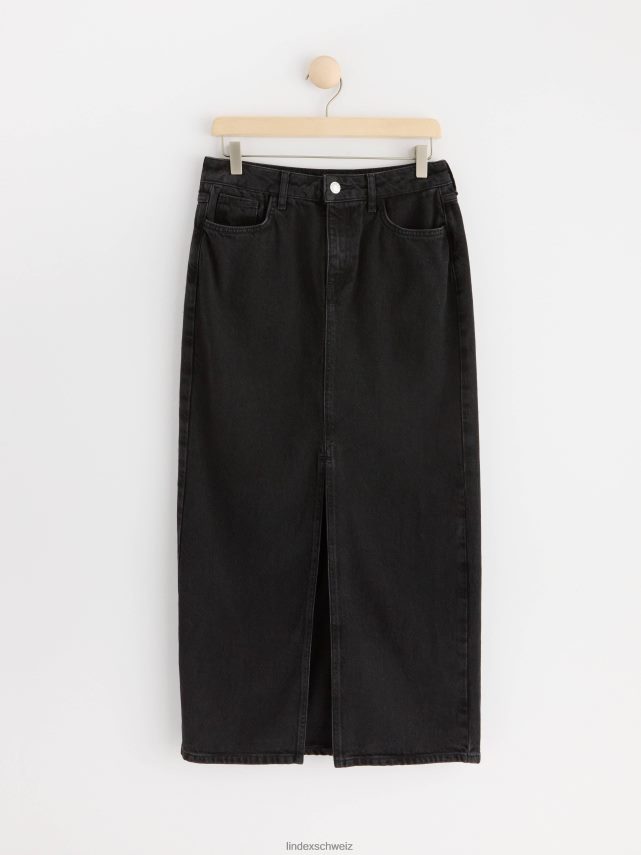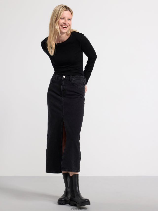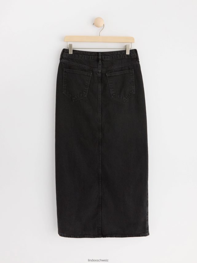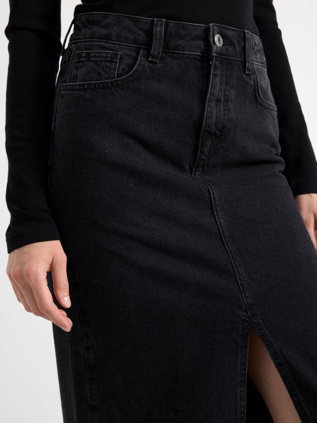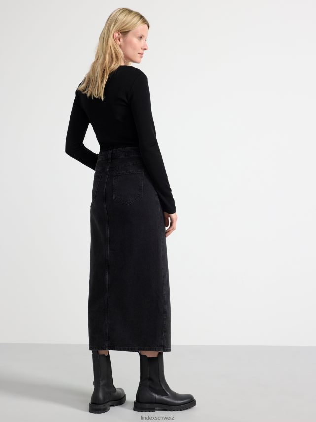 jupe longue élégante avec une coupe droite, fendue sur le devant, de couleur noir délavé.