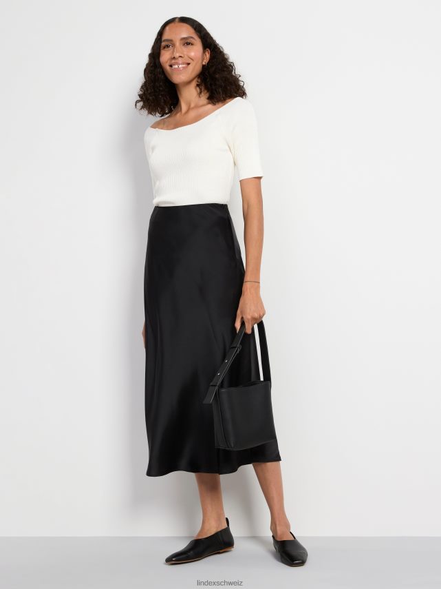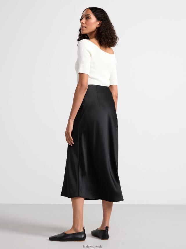 jupe mi-longue en satin noir Lindex vêtements femmes D44L8F660