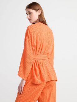 kimono en viscose certifiée avec ceinture à nouer à la taille et larges manches trois-quarts, confectionné dans un tissu plissé festif. matériel. cette pièce est partiellement confectionnée en lenzing ecovero, une option plus durable par rapport à la viscose conventionnelle. le matériau provient d’une foresterie responsable et est produit avec un impact moindre sur l’environnement.