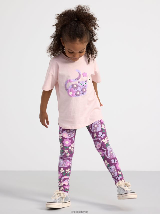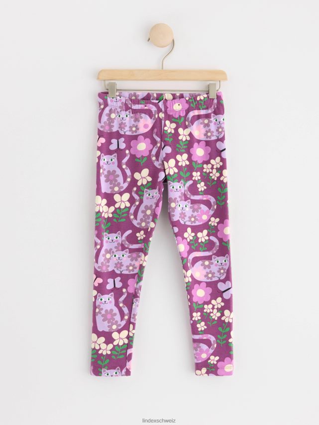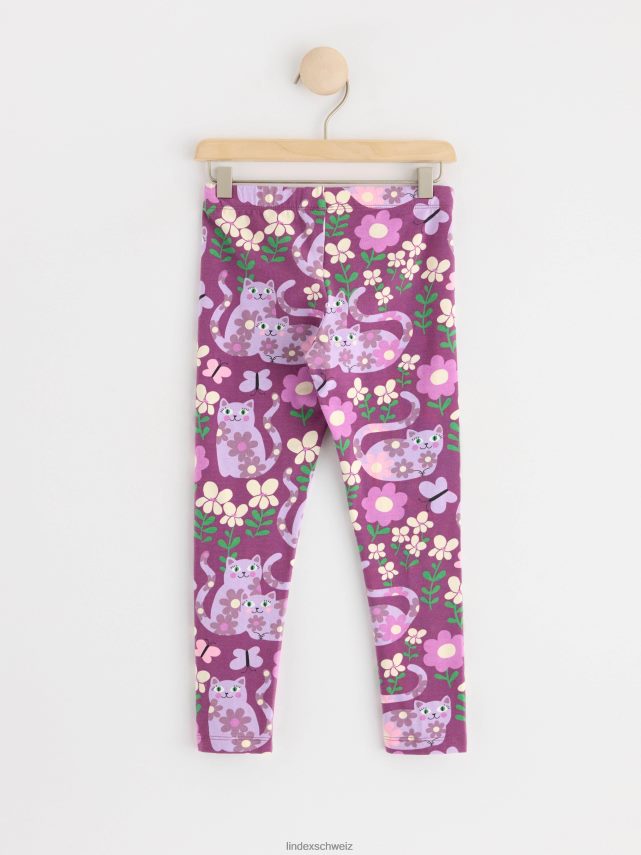 leggings avec des chats et des fleurs lilas Lindex vêtements enfants D44L8F2671