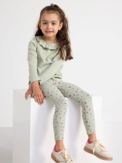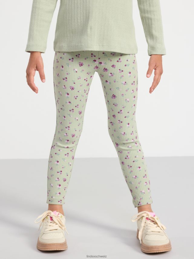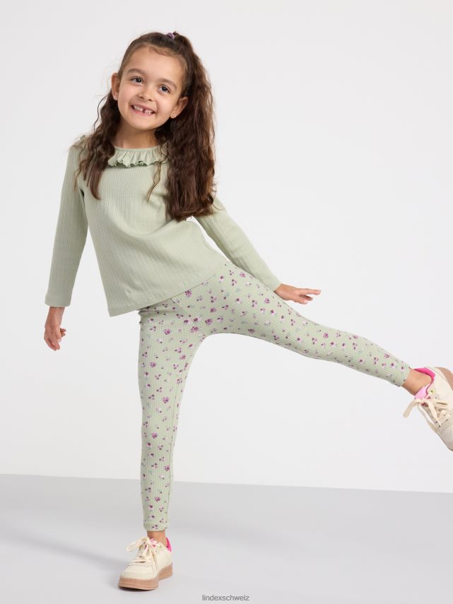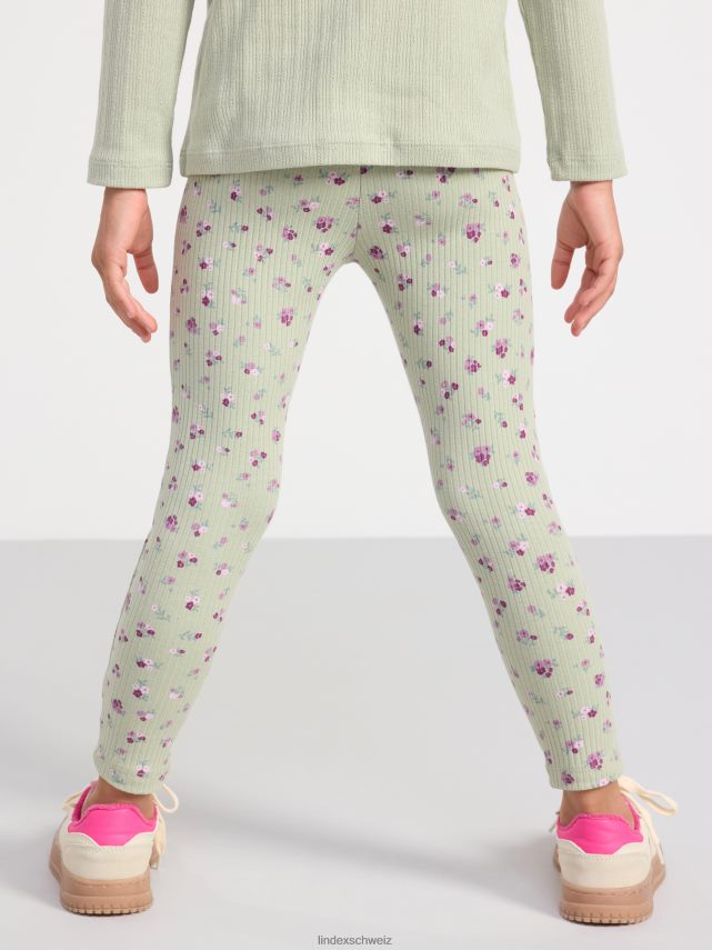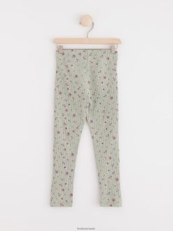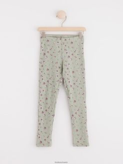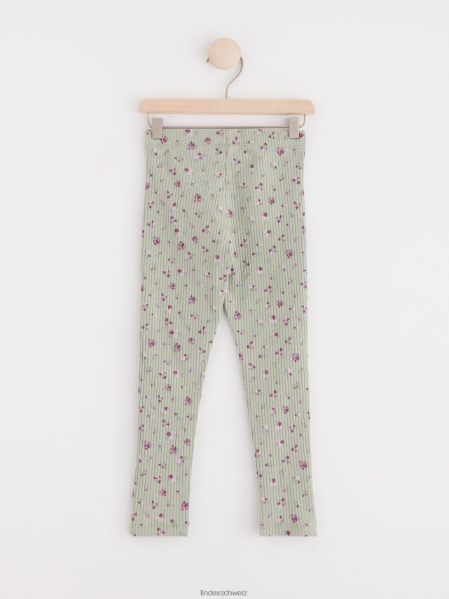 leggings côtelés avec des fleurs vert poussiéreux Lindex vêtements enfants D44L8F2526